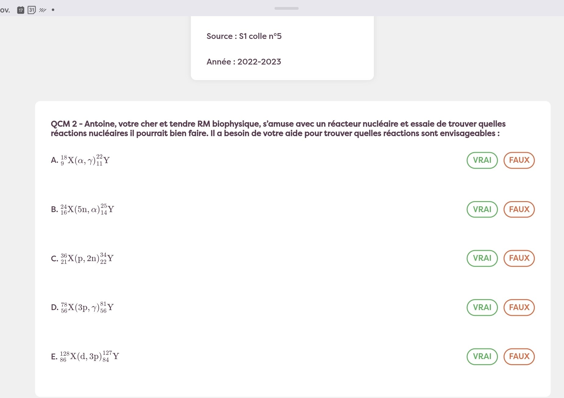 mbr21 Posted November 17 Posted November 17 Bonjour, j'ai un soucis avec ce type de qcm en biophy et meme avec la correction je ne comprends pas la résolution . Mercii Quote