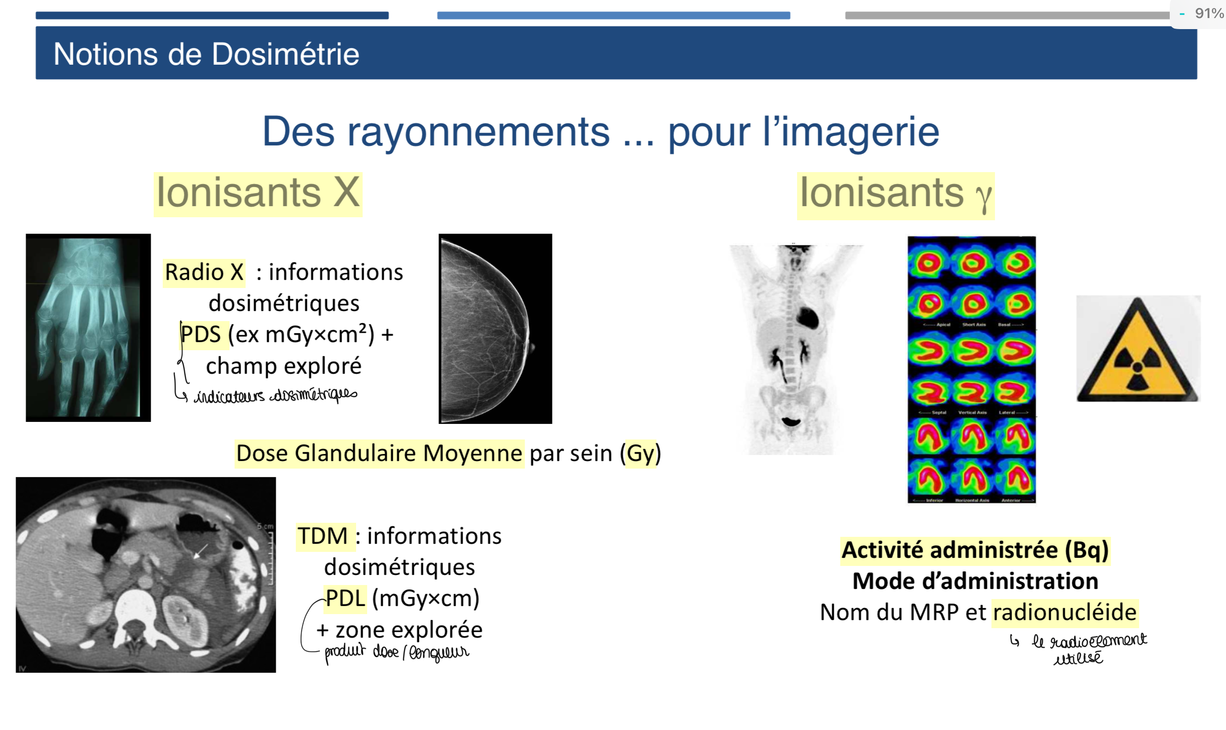 C’est vrai que c’était pas très précis de notre part de seulement dire ”examen utilisant les rayons X” car tu as raison pour la radiographie c’est le produit dose surface qui est nécessaire.