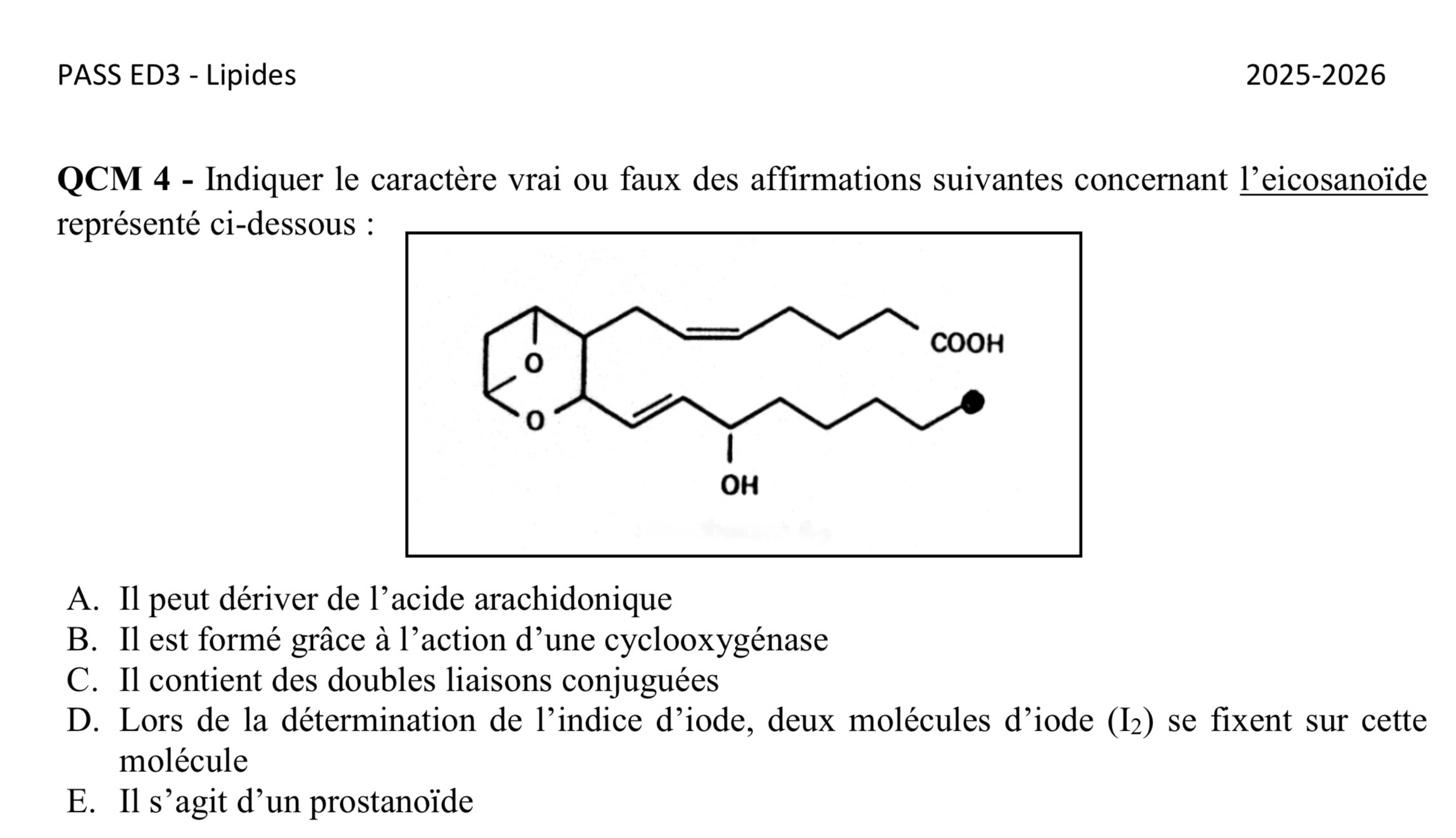 Responsable Matière Solution ju.gulaire Posted November 19 Responsable Matière Solution Posted November 19 Coucouuuu l'indice d'iode est proportionnel au nombre de doubles liaisons : sur chaque double liaison on peut fixer 1 molécule de I2, or ici on a 2 doubles liaisons donc on peut fixer 2 molécules de I2, l'item est donc vrai. J'espère que ça t'aidera bon courage ! Rayanodipine, Nentiqu and Enroutesimone 2 1 Quote