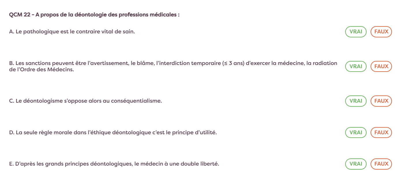 nooradrénaline Posted November 20 Posted November 20 Coucouuu, J'ai du mal à comprendre un qcm portant sur l'éthique médicale, deux items pour être plus précise: "le déontologisme s'oppose au conséquentialisme" et " La seule règle morale dans l’éthique déontologique c’est le principe d’utilité.", les deux sont marqués comme étant justes. Déjà, j'ai du mal à concevoir que seule l'utilité d'un acte x compte pour la prise de décision dans la logique déontologique, mais surtout, ça suivrait donc une idéologie un peu utilitariste et donc conséquentialiste. J'ai comme l'impression que les deux items s'opposent un peu, ou alors, je me suis complètement emmêlée les pinceaux Merci d'avance! Quote
