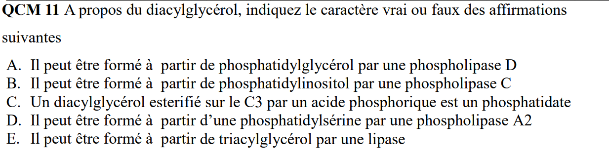 Tuteur Solution Pipas Posted November 22 Tuteur Solution Posted November 22 Coucouuu Alors d’après moi l’item est bien vraie à partir du triacylglycérol, on obtient un diacylglycérol grâce à une lipase. Cette enzyme enlève un des trois acides gras du triacylglycérol, ce qui le transforme en diacylglycérol, qui se retrouve donc qu’avec deux acides gras d’où le « di ». J’espère que ça t’auras aider image_converted.pdf ju.gulaire 1 Quote