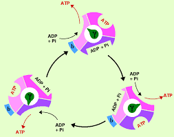 Tuteur Solution TryptoFan Posted November 24 Tuteur Solution Posted November 24 Salut salut, En effet, l'ATP synthase est composée de 3 sites catalytiques différents. En fait, il y a 3 dimères AlphaBêta qui peuvent chacun synthétiser de l'ATP. Ces 3 dimères ont 3 formes différentes (j'ai mis un schéma après). Il y a une forme ouverte qui récupère l'ADP+Pi et libère l'ATP, une forme serrée qui conserve l'ADP et une forme fermée qui synthétise l'ATP. Dans le schéma ci-dessous, chaque dimère est représentés par une couleur différente (rose pâle, fuchsia et violet). Ensuite, on peut voir que chaque dimère va avoir 3 formes différentes. Si on prend le dimère violet: en bas à gauche, il est sous sa forme ouverte (il capte l'ADP), ensuite il va passer sous sa forme serrée (en haut) qui garde l'ADP, enfin, il passe sous sa forme fermée (en bas à droite) pour transformer l'ADP en ATP. Et le cycle recommence. On remarquera qu'il y a en permanence les 3 états différents. J'espère avoir pu t'aider (et t'avoir appris que fuchsia s'écrivait comme ça, moi je savais pas), n'hésite pas si tu as besoin de plus d'explication ! Bon courage et bonne nuit Rayanodipine, .Lia. and ju.gulaire 1 1 1 Quote