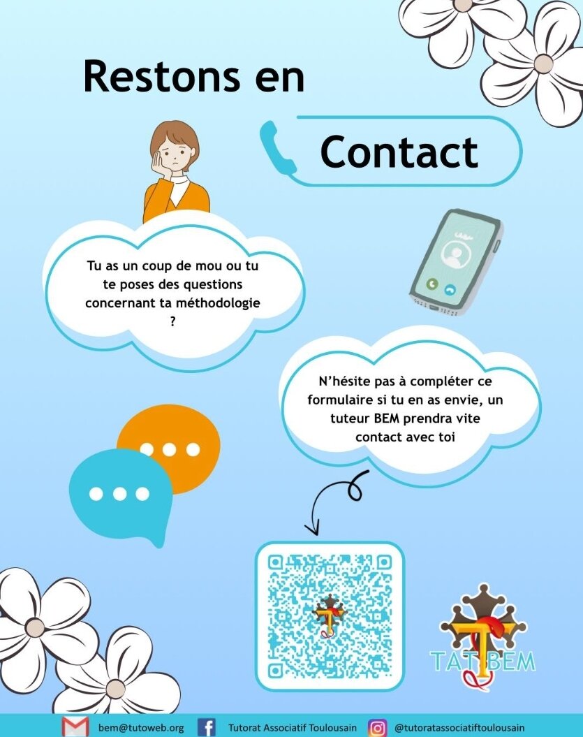 Membre du Bureau Clo82 Posted November 26 Membre du Bureau Posted November 26 Coucou mes très chers PASS et L.AS J'espère que vous allez bien et que vos révisions se passent pour le mieux ! Malheureusement, la période des examens peut s'avérer compliquée. Il arrive d'avoir un coup de mou ou de se sentir isolé. C'est pourquoi, il existe le formulaire « restons en contact ». Ce formulaire est anonyme et vous pouvez le remplir quand vous en ressentez le besoin. Par exemple, si vous avez une baisse de motivation ou des questions sur votre méthode de travail. Si vous remplissez ce formulaire, un tuteur / une tutrice BEM vous contactera dans les plus brefs délais pour vous aider ! Ce formulaire reste ouvert tout au long de l’année et est confidentiel, voici le lien : https://docs.google.com/forms/d/e/1FAIpQLSew8sCKR4GkTj7MhSvMvGJjcl3o-PxL0V9fTtvpvUkUjSxdEg/viewform?usp=sharing&ouid=108296151418881387773 Prenez soin de vous, BEMsous <3 PauliNébuline, Soulal and Batman_sans_Robin 2 1