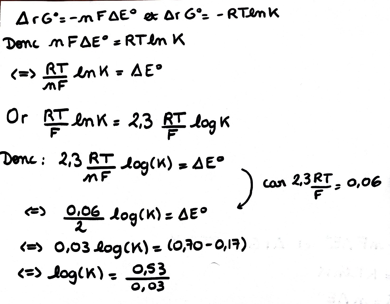 sanspseudo Posted Tuesday at 10:19 AM Posted Tuesday at 10:19 AM Salut dans une annales (2023-2024 Session 1) au qcm 8 dans l'item A on demande de déterminer le logarithme décimal de la constante K mais j'y arrive pas et je comprends pas du tout la correction.... Quote