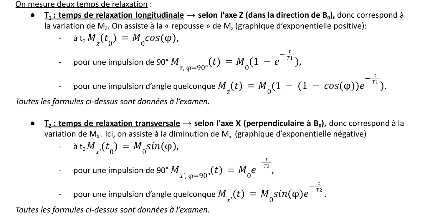 Tuteur Solution M.P Posted Wednesday at 08:54 AM Tuteur Solution Posted Wednesday at 08:54 AM Bonjour, On te donne les temps suivants : • T1 A = 800 ms, T2 A = 200 ms • T1 B = 400 ms, T2 B = 70 ms Item A : En pondération T1, plus le T1 est court plus le signal est intense (plus clair). Ici : T1 B < T1 A Le tissu B apparaît plus clair que A : VRAI Item B : En pondération T2, plus le T2 est long plus c’est clair. Ici : T2 A > T2 B Donc : A est plus clair que B B apparaît plus clair : FAUX Cotytylédon and Lolordose 2 Quote