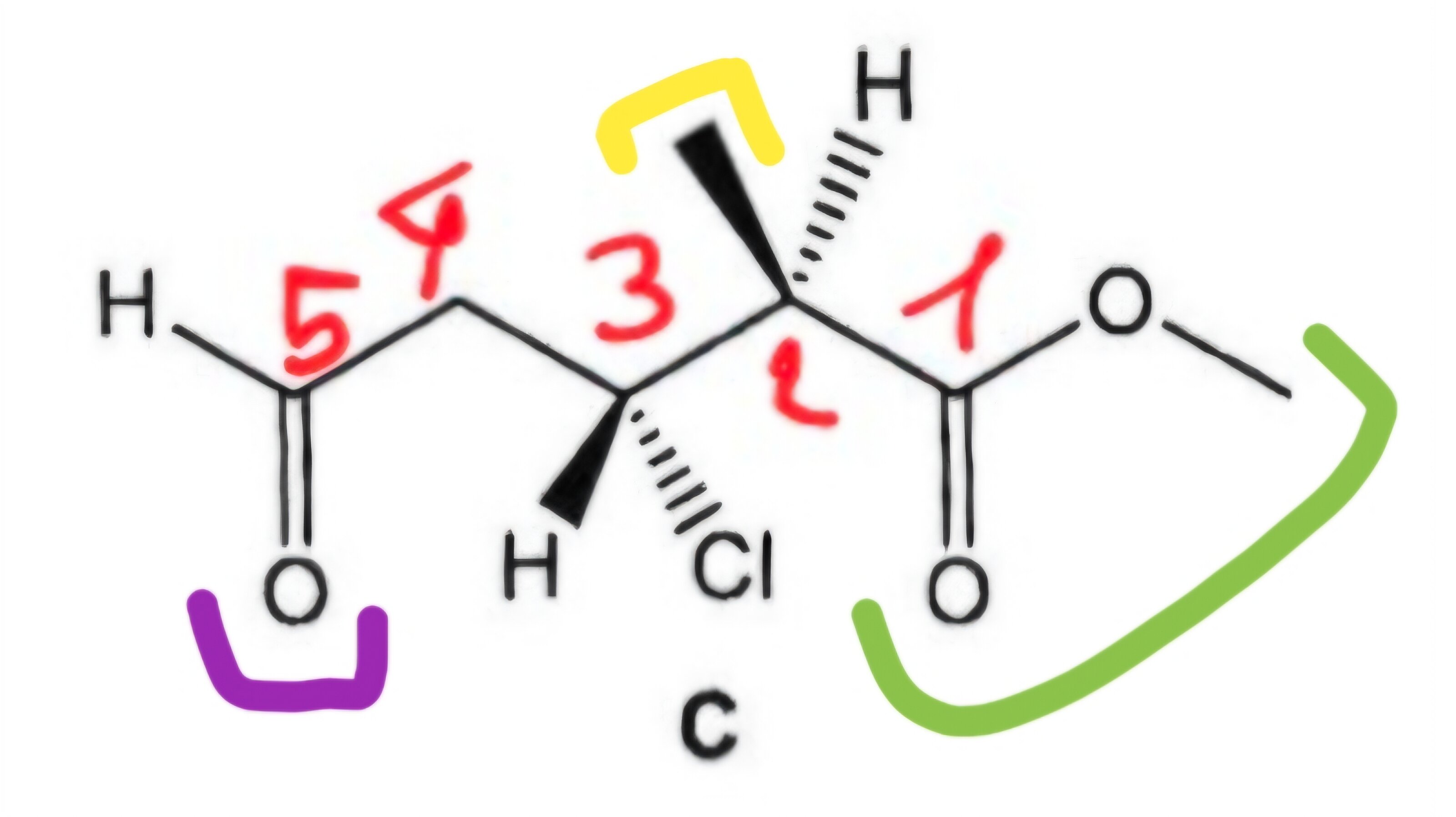 Membre du Bureau Solution Arthalosmose Posted yesterday at 01:01 AM Membre du Bureau Solution Posted yesterday at 01:01 AM Hello hello, la première chose à faire c'est de repérer le groupement principal sur ta molécule : ici c'est la partie verte et donc tu commences à numéroter tes carbones à partir de là (il faut que la fonction principale ait le nombre le plus petit possible pour sa position). Faut faire gaffe à pas oublier le carbone de la fonction ester, et quand tu numérotes tu tombes bien sur le méthyl (en jaune) sur le carbone 2 et la fonction aldéhyde (en violet) sur le carbone 5. Après tu vérifies vite fait que c'est bien le bon nom globalement mais là sur le qcm le seul truc qui change c'est qu'on te demande si c'est un oxo ou un formyl. Pour ça tu regardes si la fonction aldéhyde est sur la chaîne principale (la chaîne carbonée la plus longue liée à la fonction principale) ou sur une chaîne secondaire (une autre chaîne carbonée). Si c'est sur la chaîne principale on met le préfixe oxo (comme pour les cétones), dans le cas contraire on met formyl. Ici la fonction aldéhyde est portée par le C5 de la chaîne principale -> on utilise oxo. (Petite astuce bonus, on sait que les substituants doivent être classés par ordre alphabétique donc techniquement le [...]2-méthyl-5-formyl[...] peut pas exister). Bon courage pour les révisions ! Bastitine 1 Quote