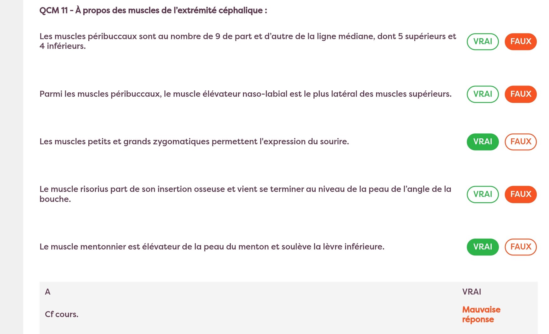 alysosome Posted January 23 Posted January 23 (edited) Bonjour, J’ai une question concernant l’item A du qcm ci dessous L’item est compté vrai, du coup je me demandais si le muscle orbiculaire de la bouche est inclus ou non dans le décompte des muscles péribuccaux Merci d'avance Edited January 23 by alysosome Quote