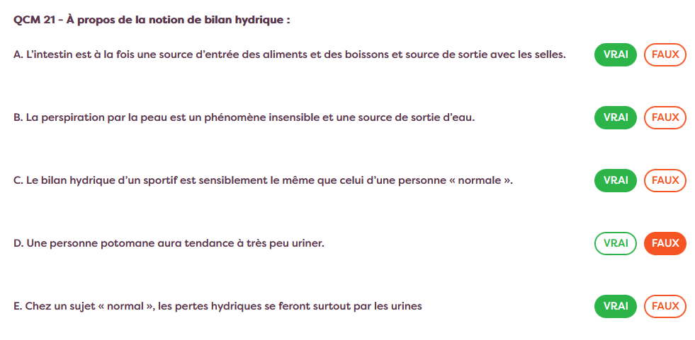 Laurent.npz Posted 4 hours ago Posted 4 hours ago Bonjour, je ne comprends pas l'item C qui est compté faux, car sois-disant ses pertes insensibles sont supérieures. Certes c'est vrai mais il va aussi plus boire pour assurer justement que le bilan soit nul non ? Il n'était pas dit ça dans le cours ? Merci d'avance. Quote