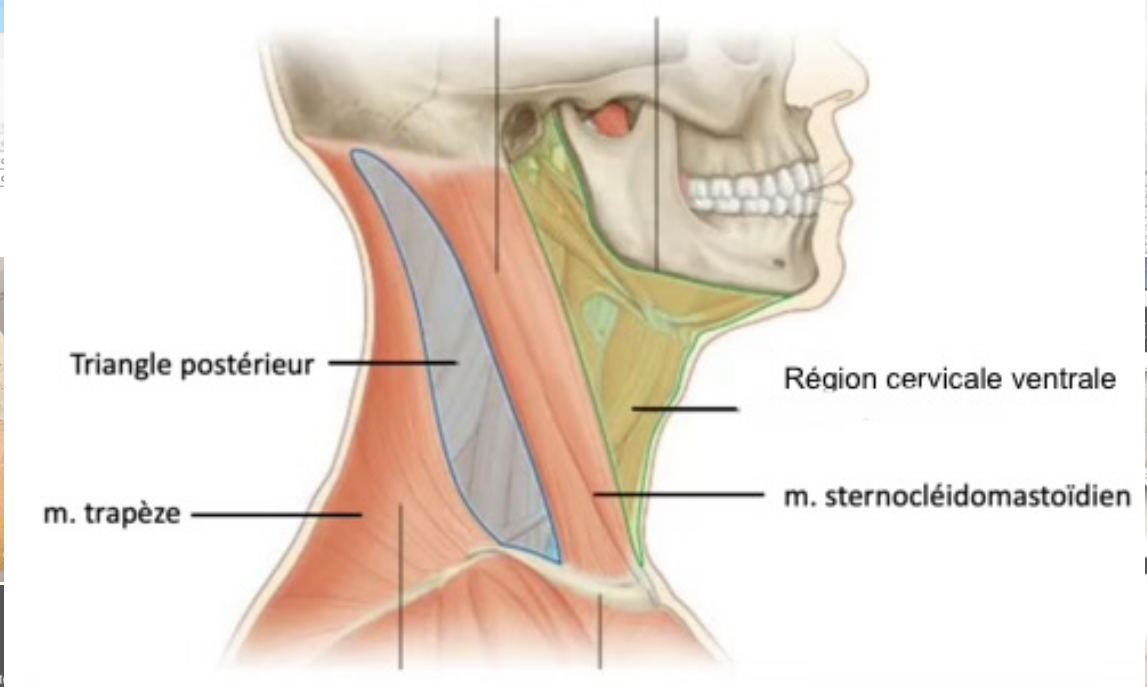 Responsable Matière vavaline Posted February 11 Responsable Matière Posted February 11 Il y a 11 heures, ayaettz_ a dit : Salut! Désolé de déranger, je m'incruste, mais je ne comprend pas pourquoi il y a écrit bord antérieur et pas bord postérieur.. Certes on peut dire que chaque élément est une limite d'un élément précis, ici le muscle SCM et la loge parotidienne. Mais ici je ne vois pas pourquoi bord antérieur serait vrai. Coucou, comme tu peux voir sur ce schéma c’est effectivement c’es le bord antérieur du muscle SCM qui délimite la région cervicale ventrale ici en vert : sterno cleido mastoïdien ayaettz_ 1 Quote