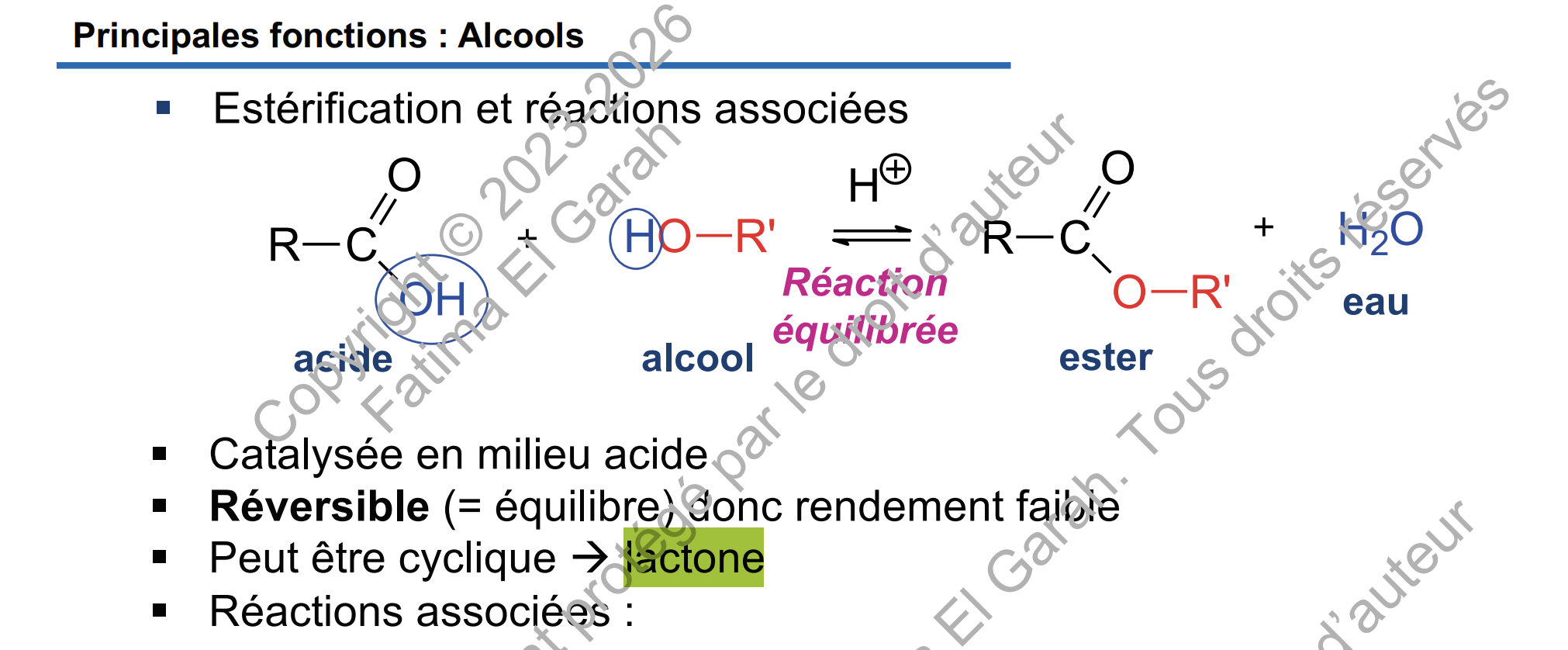 Tuteur Solution Théoxidoreduction Posted Monday at 12:25 PM Tuteur Solution Posted Monday at 12:25 PM Salut, attention ! Il s’agit du prop-2-ènol, ça veut dire que le groupement OH est sur le C1 (alcool primaire) et la double liaison est entre le C2 et le C3. De plus, après avoir fait réagir le pent-2-ènol avec du permanganate de potassium ( KMnO4 ) on devrait avoir l’acide pent-2-ènoïque = molécule A. Cependant, même en milieu acide je ne pense pas que l'on puisse former de lactone avec cette molécule. Il manque un groupement OH sur le carbone 4 afin de former la molécule représentée dans l’item E. Il s’agit bien d’une errata ! Voici une capture d'écran du diapo de la prof qui pourrait expliquer le fait que A forme un lactone mais je ne saurais pas te l'expliquer autrement. Désolé Merci de l’avoir signalé ! Sacha_Potté, Cédrôle and Mr_l'oignon 3 Quote