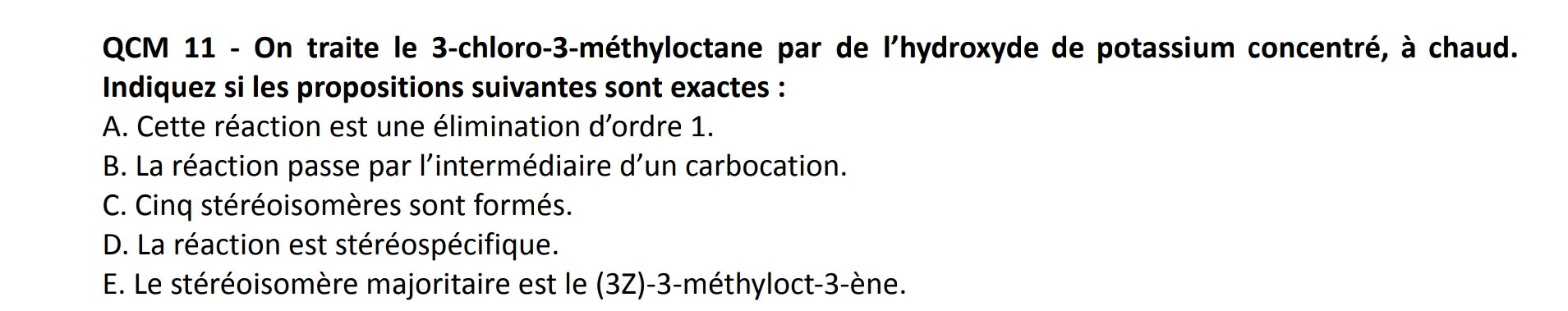 begemoth Posted February 21 Posted February 21 (edited) Bonjour les gars, Je suis en train de faire des exercices de chimie orga et me taper la tête contre un mur, spécifiquement à cause de l'item E du QCM 11 du poly dans Mécanismes réactionels. J'entends un peu près, bien que moyennement la règle de Zaïtsev, mais je n'arrive pas à comprendre pourquoi l'item E est juste. Merci en avance pour le coup de main ! Edited February 21 by begemoth Quote