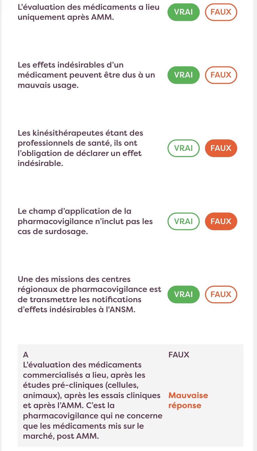nooradrénaline Posted 2 hours ago Posted 2 hours ago Hellooo, Alors en gros, ce qu'il faut retenir que la pharmacovigilance ne commence qu'après l'AMM. Or, ce n'est pas la seule forme d'évaluation, puisque rappelons le, avant d'obtenir l'AMM ton candidat médoc va passer par un tas de test et évaluations ( dans le cadre des phases pré-cliniques et cliniques en gros). Dcp ton médoc se fait évaluer toute sa vie, mais les "procédés" et formalités, si on peut appeler ça comme ça, seront différents Je sais pas si j'ai été claire, j'espère au moins, mais n'hésite pas si jamais! Et bonne soirée! Toto_tfc 1 Quote