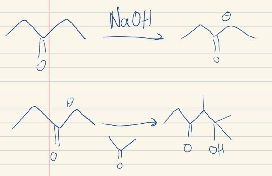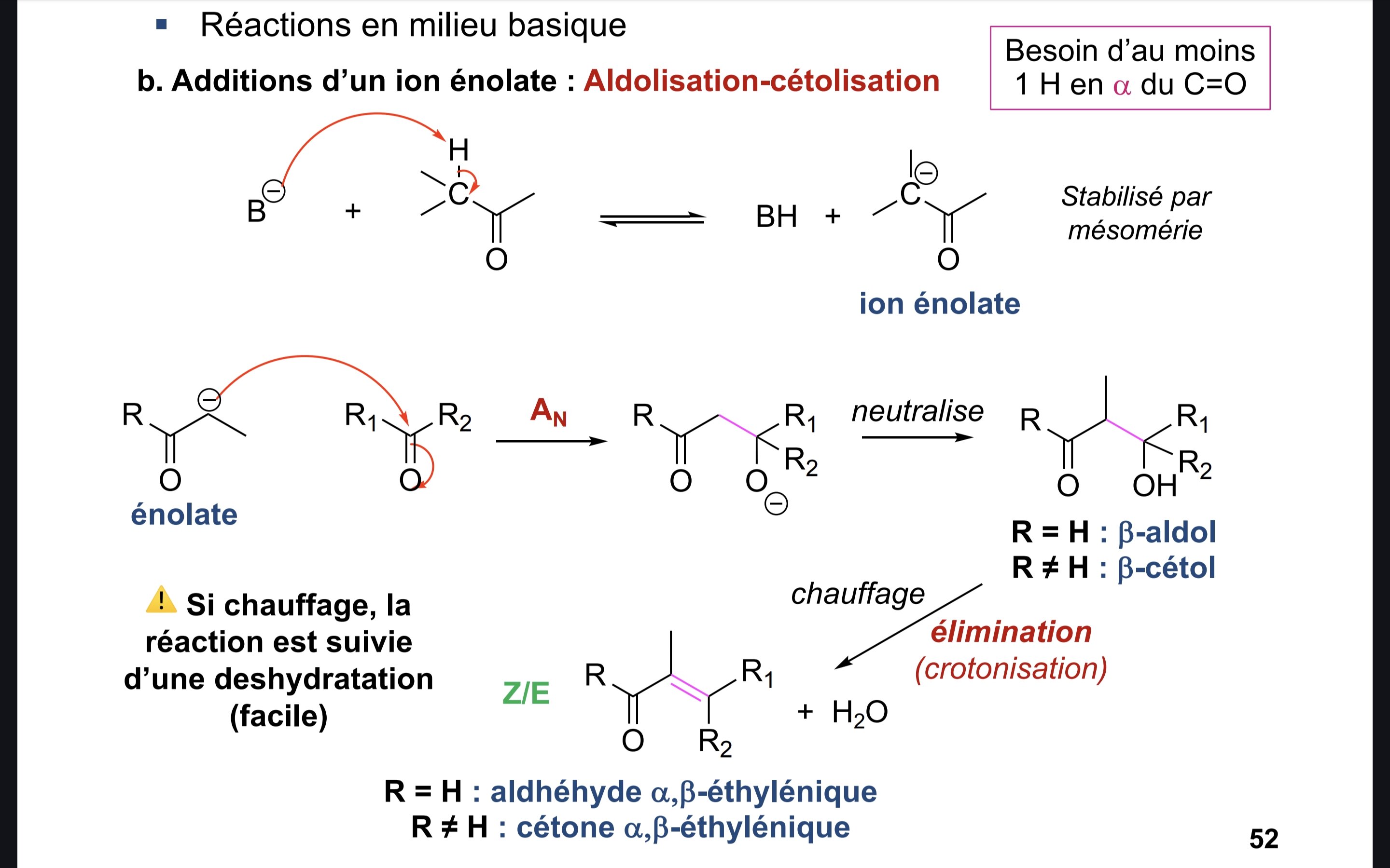Tuteur Solution Opéra Posted March 17 Tuteur Solution Posted March 17 Salut @Maelysss, pas de soucis je t'explique. Il s'agit ici d'une réaction d'aldolisation-cétolisation, entre deux cétones : A- Oui, au cours d'une aldolisation il y a passage par un ion énolate (c'est du cours) B- Non, pas deux carbone assymétrique (4 substituants différents), mais un seul en position 4. C- Vrai, il peut être R ou S. D- Vrai, après réduction de la fonction cétone par NaBH4 on aura une fonction alcool en plus de celle existant déjà. E- Non il y en a 7 Est-ce que c'est plus clair ? L'Electron_Augé 1 Quote