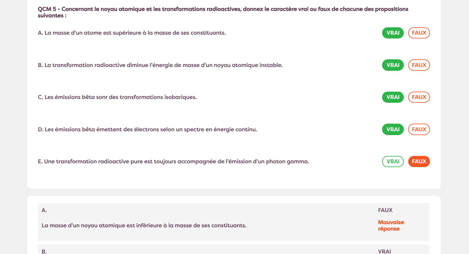 Cathéterine Posted Thursday at 09:58 AM Posted Thursday at 09:58 AM Salut, Je trouve ça bizarre que sur l'item A ils disent "masse d'un atome" mais à la correction ils disent "masse d'un noyau atomique", donc est-ce que finalement ce ne serait pas vrai? Merci, Quote
