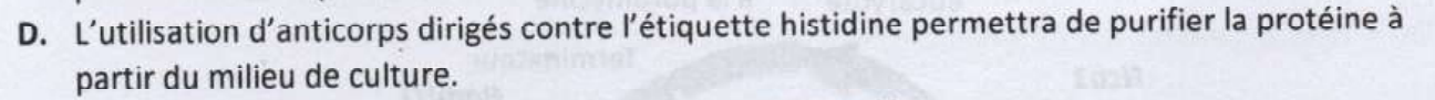 Responsable Matière Solution An-Schwann Posted March 21 Responsable Matière Solution Posted March 21 Salut! Oui on pourrait utiliser du nickel, mais ce n'est pas un absolu, on peut utiliser d'autre méthode, comme des anticorps. On peut créer des anticorps reconnaissant l'étiquette his. Dans ce cas lanticorps va se lié a l'étiquette et donc retenir, ce qui permettrait de la purifier. J'espère que c'est plus claire! feligament and Batman_sans_Robin 2 Quote