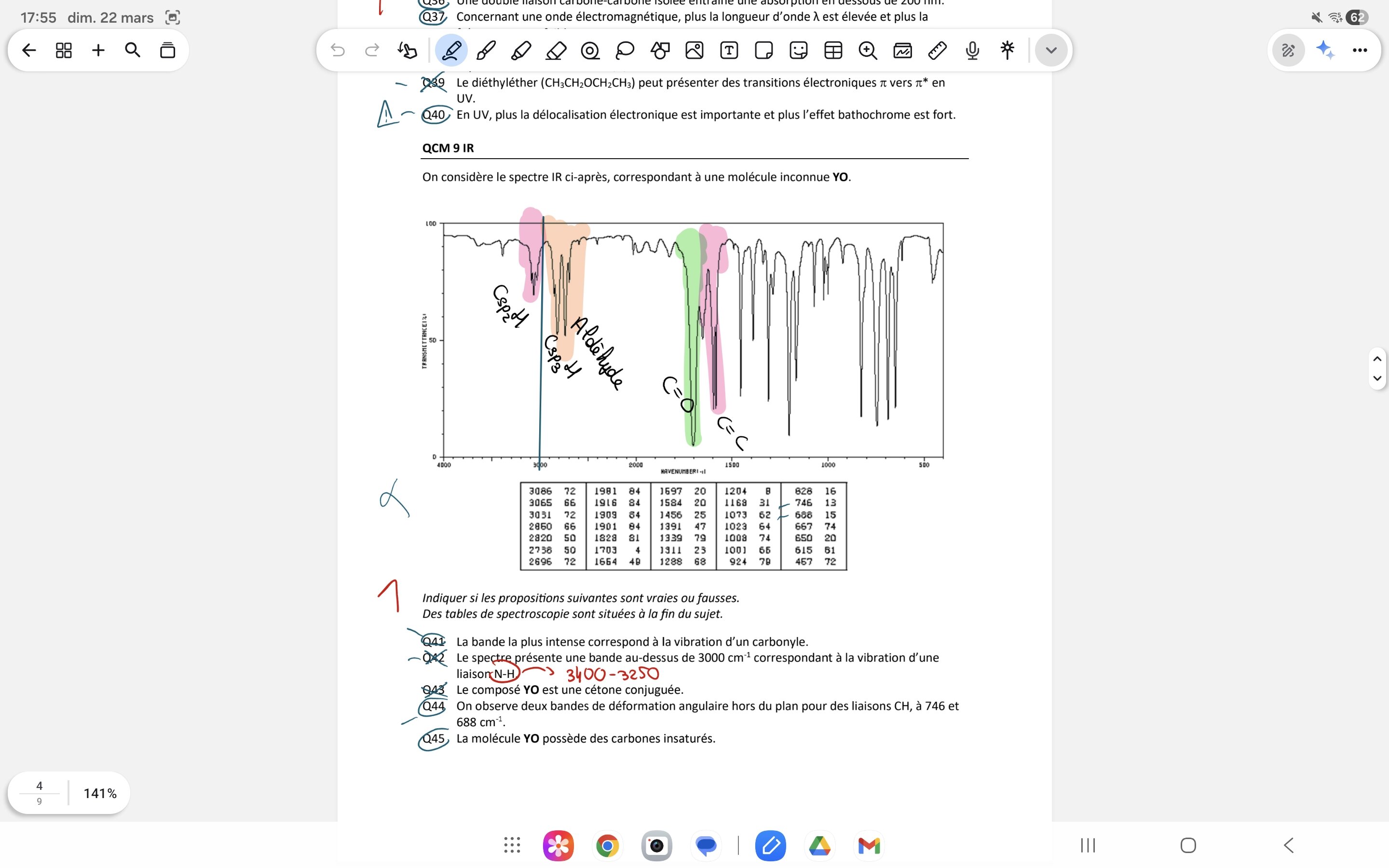 Ancien Responsable Matière Ankyyrine Posted Sunday at 04:52 PM Ancien Responsable Matière Posted Sunday at 04:52 PM Je valide la réponse de l'étudiant, il faut regarder précisément si les bandes correspondent à ce que demande le prof. Sachant que vous avez le tableau des déformations C-H dans le cas où elles vous sont demandées. Je ne sais pas si j'ai répondu à ta question ? Sinon pourrais tu reformuler ? Quote