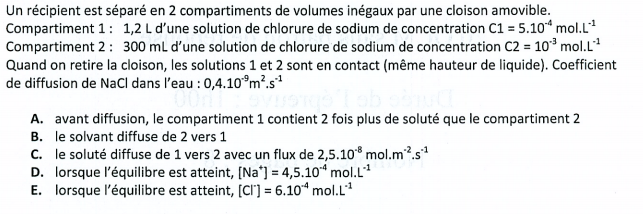 Dans le qcm sur les compartiments liquidiens, je n'arrive pas à calculer la concentration de l'item D et E ( je trouve 4.5x10^-4 au lieu de 6x10^-4)