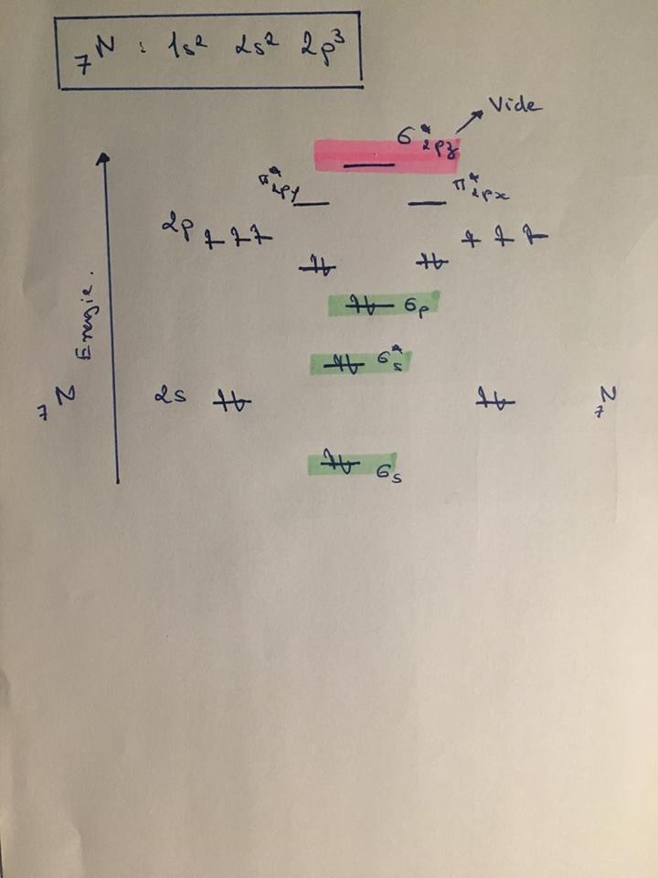 SOSIE Posted September 16, 2017 Posted September 16, 2017 Salut à tous! Alors je vous explique : j'ai un gros souci avec les OM!! Par exemple j'ai fait une erreur pour l'item A du QCM 63 du livre qui dit : "dans une molécule de diazote N2 toutes les orbitales σ sont pleines en électrons" compté VRAI J'ai mis faux car en faisant le diagramme énergétique de la molécule de diazote (et en suivant les règles de remplissage d'une OM) je trouve que l'orbitale σ2pz* (antiliante donc) n'est pas remplie! Pour plus de clarification de mes propos je met en Pj mon shémas , j'ai rempli l'orbitale moléculaire en prenant soin de remplir d'abord celles de plus basse énergie avant celles de plus haute énergie . Dites moi si c'est un souci de remplissage ou si c'est un autre aspect du cours que j'ai zappé!