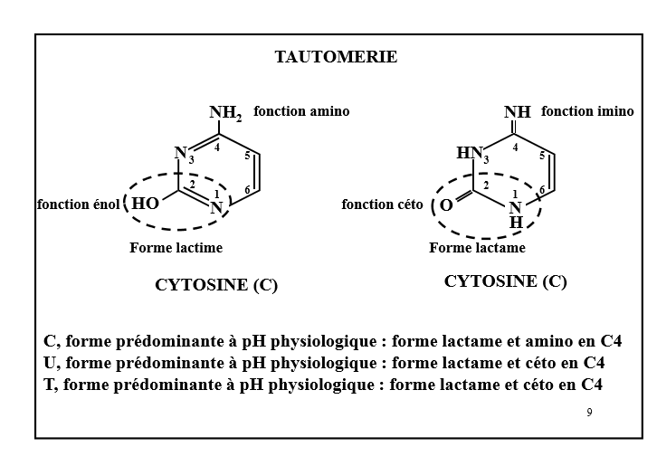 Humérustique- Posted September 19, 2017 Posted September 19, 2017 Bonsoir bonsoir, je ne comprends pas la tautomérie. Le prof a marqué dans le cours: C, forme prédominante à pH physiologique: forme lactame et amino en C4. Pourquoi n' a t-il pas marqué "C, forme prédominante à ph physiologique: forme lactame et imino en C4" ? Pourquoi mélange t-il la forme lactame et amino alors qu'elles ne sont pas sur " la même molécule en même temps" ? Je joins une photo du cours en question merci encore pour vos réponses