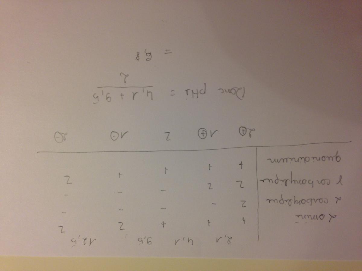 malika Posted October 16, 2017 Posted October 16, 2017 Salut, J'ai un soucis avec le calcul de mon phi pour l'exercice 5 du CCB 2012 (je vous mets l'énoncé en pièce jointe), en fait je trouve un phi différent de celui attendu par le prof... mon zwitterion est mal placé dans ma séquence d'ionisation mais je ne sais pas pourquoi: je vous mets en pièce jointe mon tableau d'ionisation certainement faux ! (pour le tableau d'ionisation je considère que lorsque que mon phi est inférieur au ph de la colonne je mets un moins et quans il est supérieur je mets un plus) Si quelqu'un pouvait m'aider à comprendre mon erreur Merciii http://hpics.li/6286dd0 http://hpics.li/5ec7cca