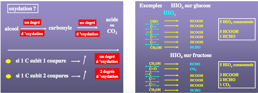 Je ne comprends pas par exemple pourquoi, sur la 1ère coupure du glucose (1 seule coupure donc) , on obtient HCOOH, c'est à dire la même chose que si le carbone subit 2 coupures...