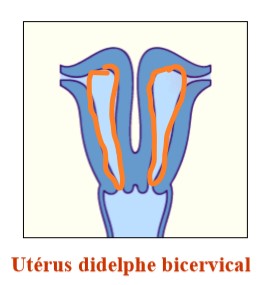 Solution Caeruleum Posted January 3, 2018 Solution Posted January 3, 2018 Salut ! Désolée d'avoir mis tant de temps à répondre !!!! Donc pour l'utérus didelphe, on voit la séparation qui se fait bien des trompes jusqu'au col. On a donc 2 utérus séparés par la le défaut de fusion et 2 cols. (Regarde mon super shéma ! ) La corne correspond à une petite partie entre les trompes et la cavité utérine. Normalement, elle n'est pas grande mais avec un défaut de fusion, elle s'agrandit. (C'est ce qui est en bleu sur le schéma) Ensuite, je ne comprend pas trop ce que tu veux dire par "origine de la malformation", est ce que c'est origine mullerienne, entoblastique,...? Pour finir, la différence entre unicervical et bicervical est de voir si la cloison descend suffisamment bas pour séparer le col de l'utérus en 2. En unicervical, le col ne sera donc pas séparé donc la cloison sera relativement haute contrairement à une cloison qui descend beaucoup et donc qui sépare le col et en forme 2 distinct. Voila ! J'espère t'avoir aidé !! Sinon alors n'hesite pas a me redemander ! Quote