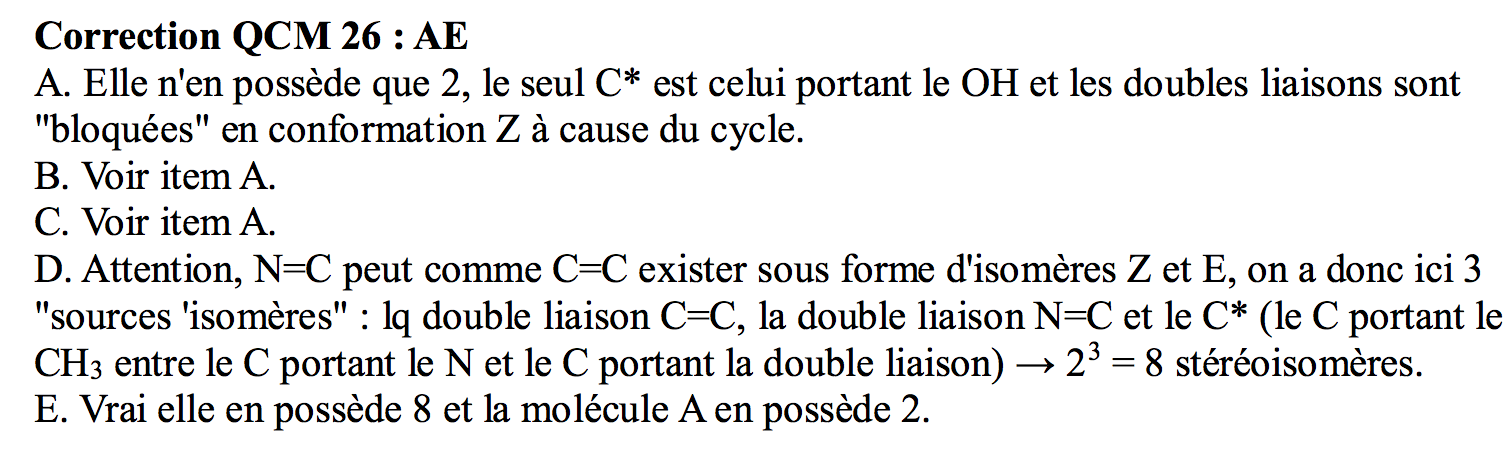 • L'item "La molécule a 8 stéréoisomères au max" est faux.
