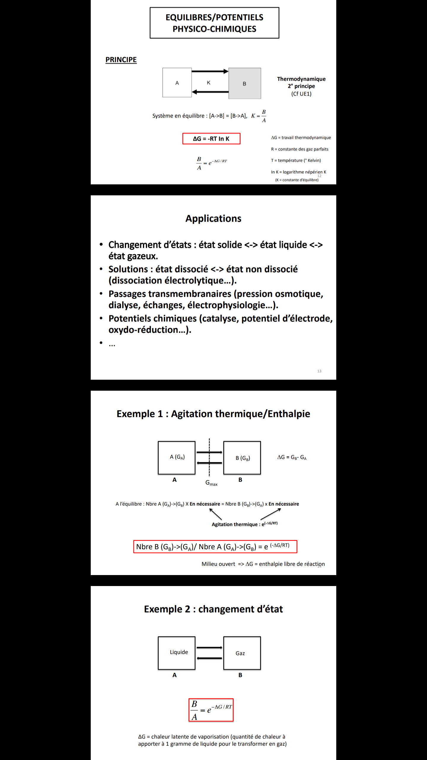 Ancien du Bureau sskméta Posted September 13, 2018 Ancien du Bureau Posted September 13, 2018 yup c'est sur quelle diapo que tu vois que G est le travail thermodynamique ? le travail ou W à pour expression : -F x dx. En gros c'est quand une force crée un déplacement. l'enthalpie libre ou G à pour expression : G = H - TS. Je ne pense pas que ça ait une réalité physique, c'est juste un outil. Quote