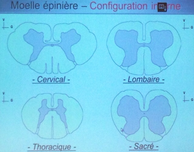 Membre d'Honneur Solution GeorgeR Posted March 19, 2014 Membre d'Honneur Solution Posted March 19, 2014 En effet, il parle des 5 myélomeres sacrées qui pendant la vie embryonnaire se situent dans la région sacrée, et monteront pendant la croissance pour finir en arrière de T12-L1-L2 mais pas plus bas. On peut le voir assez bien sur ce schéma :