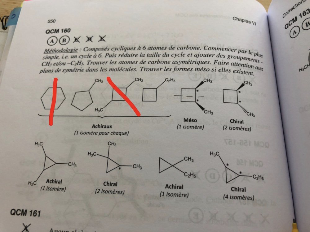 valepalmas99 Posted October 23, 2018 Posted October 23, 2018 Bonjour, je faisais un ccm sur le livre de la prof, est je ne comprends pourquoi les composés avec une ligne rouge ne sont pas aussi des méso, comme celui indiqué vers la droite. Merci de m'éclairer ! Quote