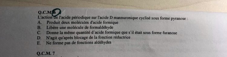 Solution Dine Posted November 24, 2018 Solution Posted November 24, 2018 Bonjour, Pour une molécule cyclisée tu ne coupes qu'entre les C qui ont des OH libres, donc là entre C1/C2, C2/C3 et C3/C4! Quote