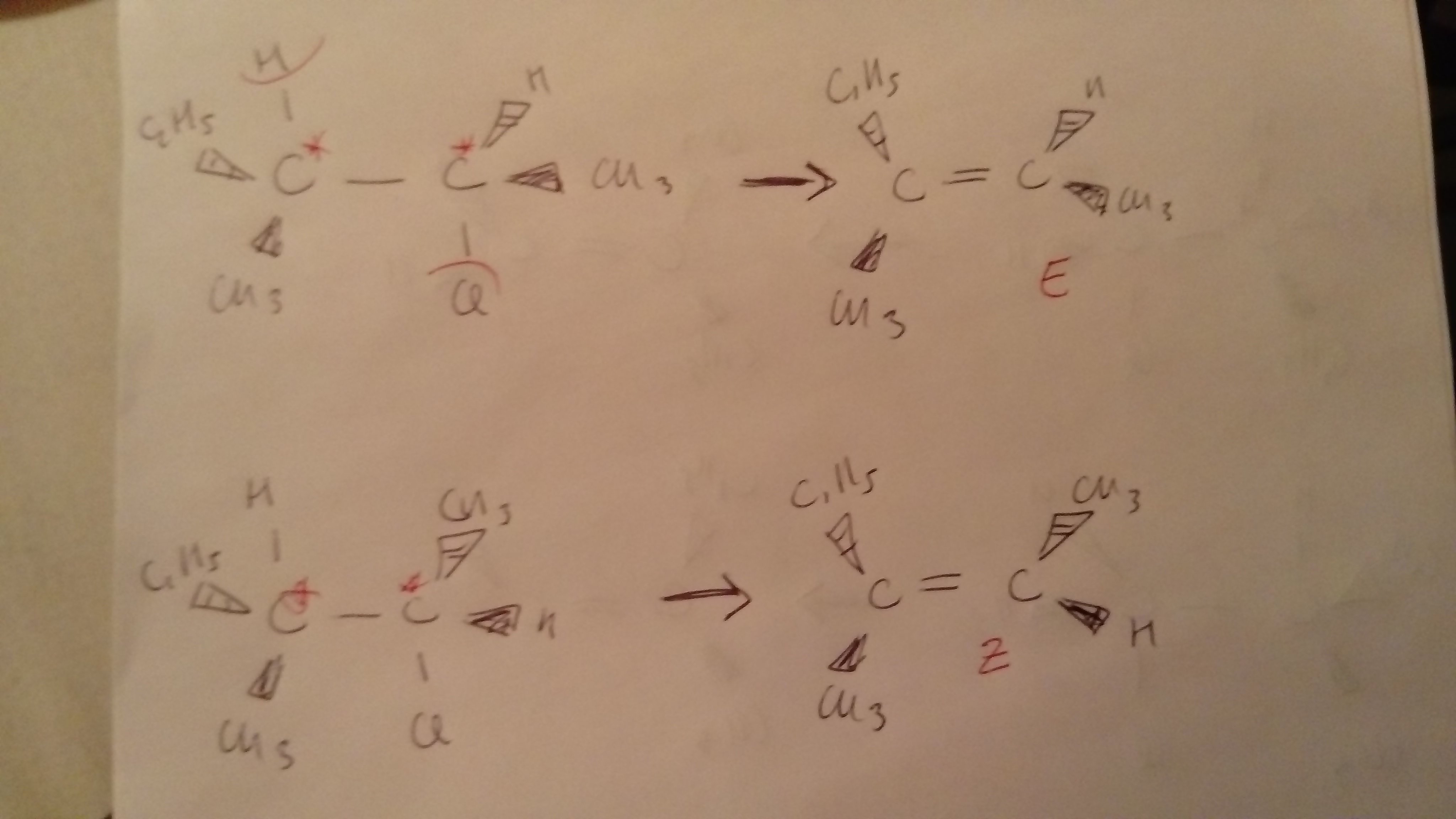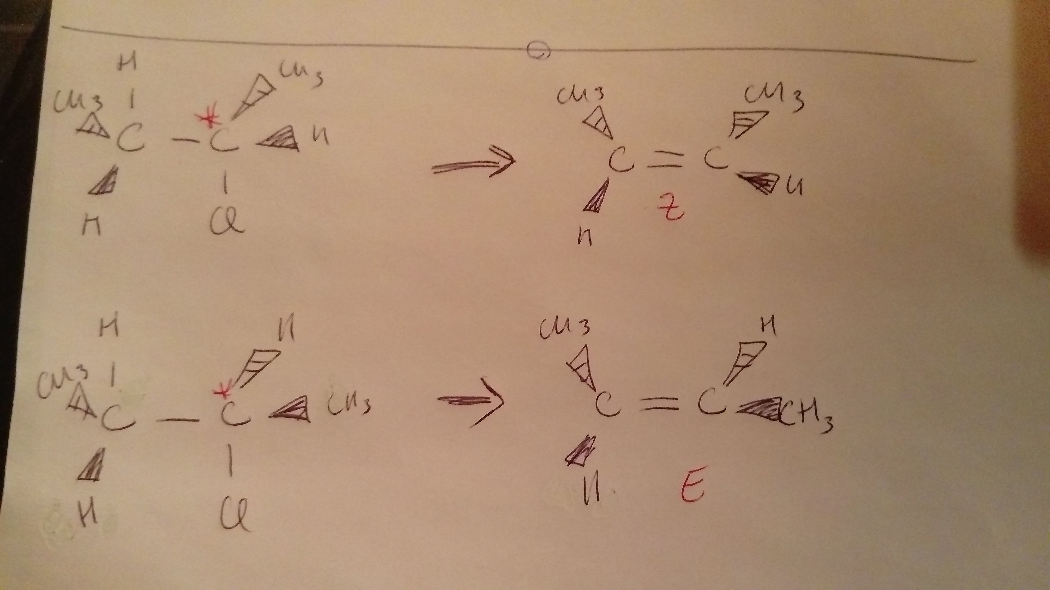 Yippee-kai-yay Posted January 2, 2019 Posted January 2, 2019 une partie de ta phrase est fausse @lenouillette : E1 => mélange Z et E E2 => si t'as deux carbones asymétriques ==> Z ou E (car la réaction se passe en une seule étape, donc ça ne peut être que soit l'un, soit l'autre). Donc un isomère. si t'as un seul carbone asymétrique, ça va dépendre de ta molécule initiale, et de la place du carbone asymétrique (donc je dirais qu'il n'y a pas de règle générale). Donc un seul isomère exemples (désolé, ça fait beaucoup de photos ) 1) là on a deux C*, mais de configurations différentes dans les 2 cas. En fonction de celles ci, on a deux isomères géométriques différents. 2) là on a un C*, mais deux configurations différentes. On obtient un seul isomère (mais différent en fonction de la configuration de départ) 3) là on a aussi un C*, mais à un endroit différent. On n'obtient qu'une seule forme, et pas d'isomères géométriques (car un C porte des groupements identiques). j'espère que vous comprenez mieux, n'hésitez pas sinon ! et courage à tous Quote