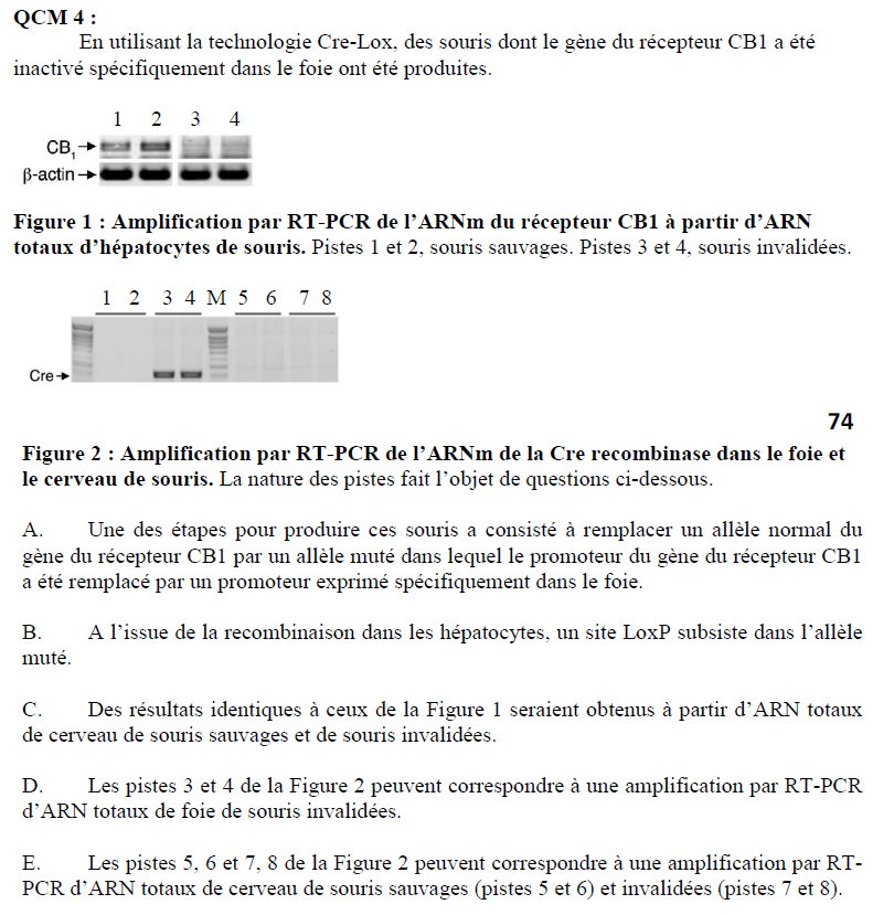 B -  vrai car en effet, lorsque tu élimine ton gène du récepteur CB1, il reste bien un site loxP (en fait, c'est ça surtout ça qu'il faut retenir de la technique)