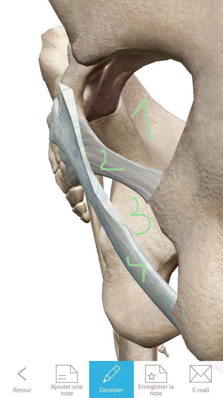 Je te joins une autre image si ça peut te permettre de visualiser encore mieux! en 1 c'est la grande ouverture sciatique, en 2 c'est le ligament sacro-épineux, en 3 la petite ouverture sciatique et en 4 le ligament sacro-tubéral.