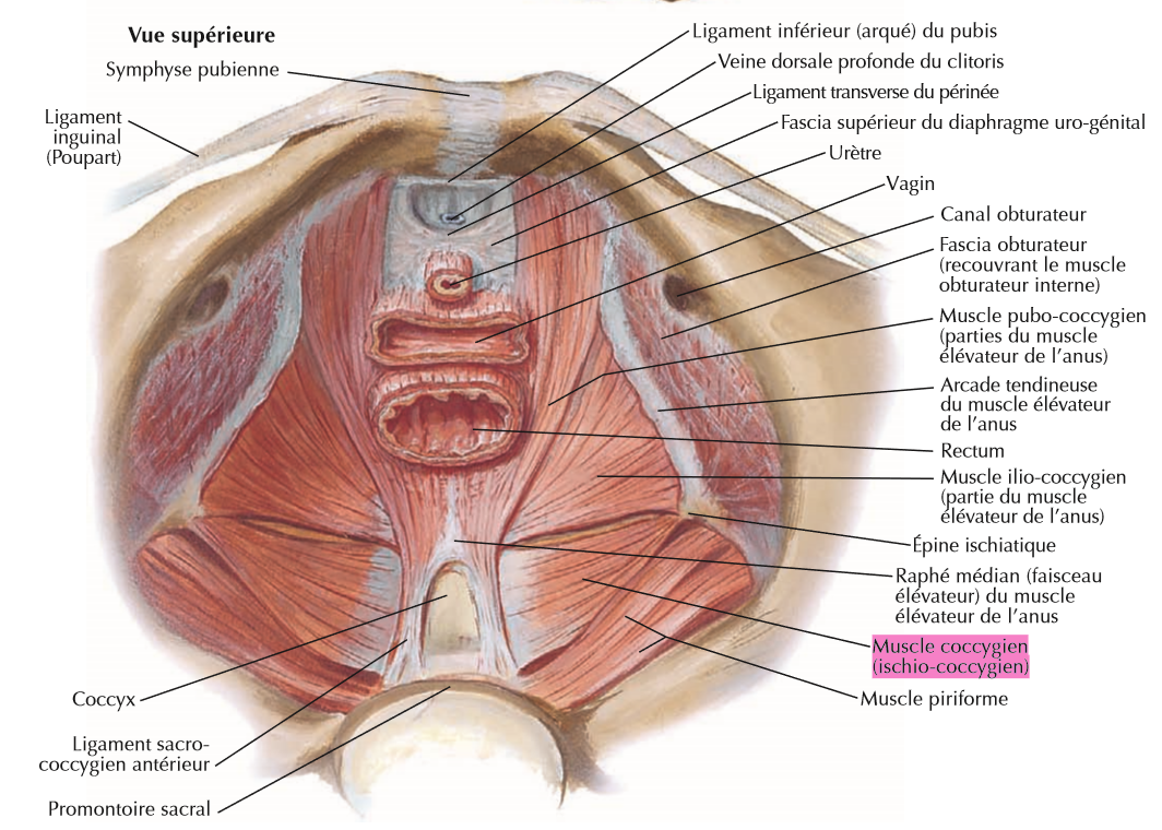 sophia_m31 Posted April 2, 2019 Posted April 2, 2019 Salut @Picha ! Alors je viens contredire @Lénatriurétique @CoralieB et @Chat_du_Cheshire oups mais pour moi le muscle ischio-coccygien et coccygien sont un seul et même muscle, il peut s'appeler l'un ou l'autre, je l'ai écrit à plusieurs reprises dans mes cours ... Certains considèrent ce muscle comme un faisceau de l'élévateur de l'anus, d'autres le considère comme un renforcement en arrière de l'élévateur de l'anus ! Voilà ci joint un schéma du Netter et une phrase Wiki qui peuvent appuyer mon avis (mais ce serait bien que quelqu'un d'autre confirme mes dires) "" Et pour répondre à ta dernière question : sur ton schéma le muscle ischio-coccygien correspond au muscle en rouge foncé le plus dorsal (il est représenté qu'à gauche) En espérant ne pas t'avoir embrouillé encore plus Quote