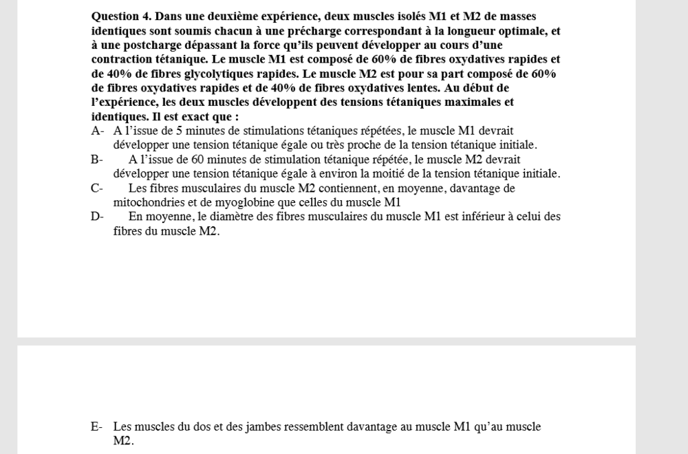 heim Posted November 19, 2020 Posted November 19, 2020 Bonjour @Shy oui tu as raison, si la Postcharge est inférieure à la tension ce n'est pas une contraction isométrique mais isotonique. À la Perm de Lundi dernier on nous a posé cette question et hélas on avait pas la personne car je ne comprend pas non plus cette justification car si la tension est supérieure à la post charge il devrait y avoir une contraction avec raccourcissement donc pas une contraction isométrique. Je pense que cette éclaircissement mériterait d'être posé sur moodle au professeur en question (à moins que quelqu'un ait la solution ?) Désolé de pas pouvoir t'aider Quote