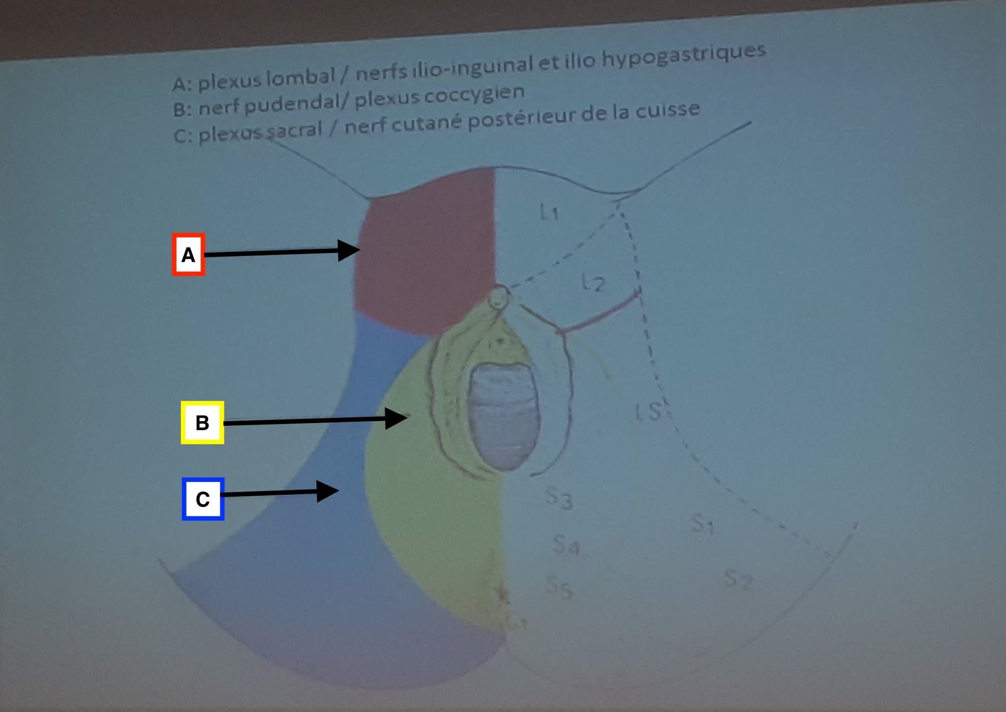 Ancien Responsable Matière Solution Théophylline Posted April 16, 2019 Ancien Responsable Matière Solution Posted April 16, 2019 Salut @504TMW ! J'ai noté : - "zone rouge" : L1/L2 (territoire du plexus lombal) - "zone jaune" : S1/S2/S3/S4 (territoire du pudendal + plexus coccygien) - "zone bleue" : S1/S2 (territoire du n cutané et dorsal de la cuisse) Quote