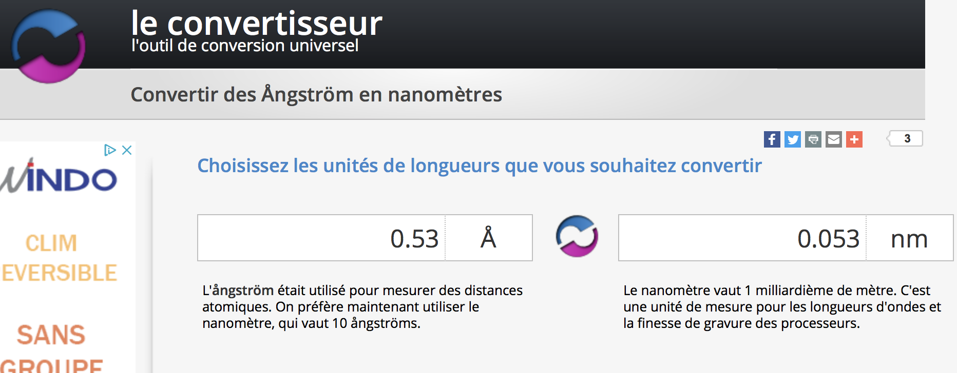 Ancien Responsable Matière Tchoupi Posted September 13, 2019 Author Ancien Responsable Matière Posted September 13, 2019 Bonsoir @lil En voyant ton message j'ai refais et c'est vrai qu'en convertissant 0,53 Angström je tombe aussi sur 0,053 nm... J'ai même fais le tableau de conversion pour pas me tromper Et même un convertisseur en ligne confirme... Quote