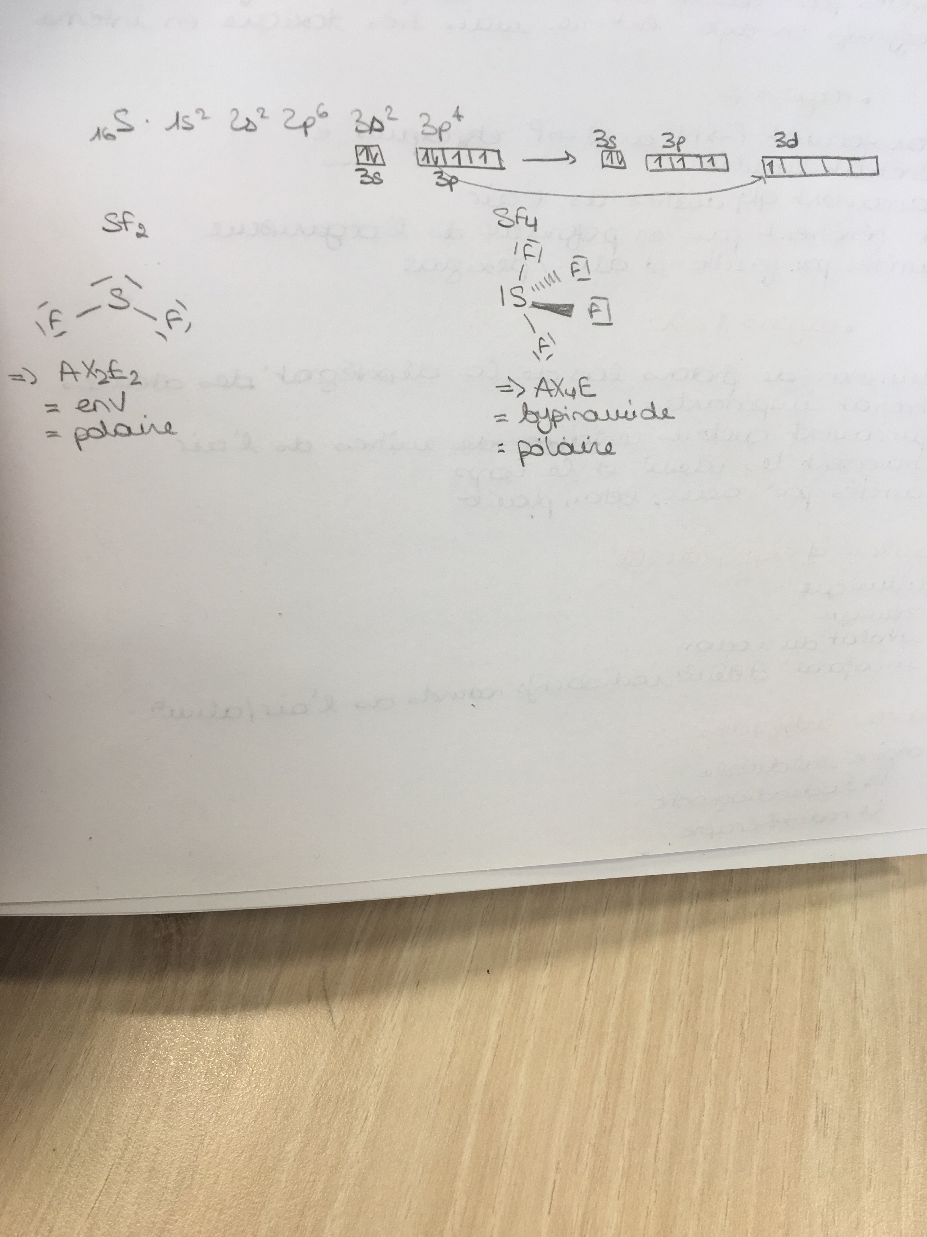cutieheartx Posted October 1, 2019 Author Posted October 1, 2019 (edited) Salut @marta66, Merci pour la photo. Tu déduis à partir du fait que SF2 est hybridée AX2E2 et que SF4 est hybridée AX4E pour dire qu'elles sont polaires ? Tu raisonne avec la géométrie ou bien l'hybridation ? Edited October 1, 2019 by cutieheartx Quote