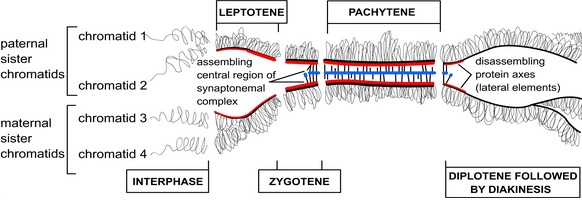 Mpi Posted September 14, 2014 Posted September 14, 2014 Si je peux squatter ce post j'ai une petite question cornernant les Anomalie de la Méiose , pour l'anomalie de Segregation celle qui a lieue lors de la première division elle a lieu precisément en Anaphase I ou en Métaphase I ? Et la SPCS elle a bien lieu en Anaphase I ? Une autre question le complexe synaptonémal c'est un K paternel qui va se lier avec un K maternel ? Et les élements lateraux (numéro 1 sur le schéma ) de ce complex sur lesquels on trouves les chromatides soeurs c'est quoi exactement ? Lara ce à quoi tu fais réference ça ne serait l'appariement des K au stade 2 de la Prophase car moi j'ai un K 1 paternel qui va se lier à un K 1 maternelle ?