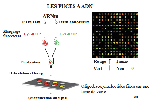 LdvMstr Posted December 6, 2019 Posted December 6, 2019 Coucou, cactushérisson, Alors pour savoir ce qui apparait rouge ou vert il faut se référer au diapo du prof, sur la puce à ADN : Donc le Cy5 va colorer en rouge et le Cy3 en vert, donc en vert on aura ce qui est exprimé chez le patient ayant une maladie de Huntington se déclarant tardivement et en rouge ce qui est exprimé par le patient ayant une maladie de Huntington se déclarant de manière précoce. En jaune, ce sera ce qui est exprimé chez les deux types de patients. Voila, j'espère que j'ai répondu à ta question et que j'ai été claire. Quote