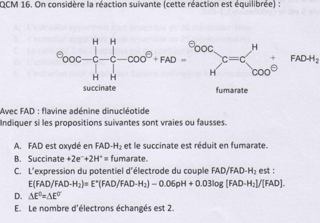 ∆E' = ∆E0' - 0,06/n * log (succinate/FAD) -  pH*0,06*x/n, avec x le nombre de H+ échangés