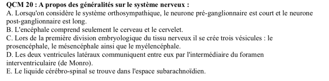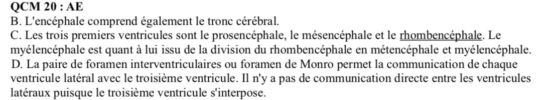 Solution Lilette Posted February 1, 2020 Solution Posted February 1, 2020 En fait dans la justification, on te dit que les 2 ventricules latéraux ne communiquent pas directement entre eux (ce que tu vois sur ce schéma). Ils s'abouchent chacun de leur côté dans le 3ème ventricule par l'intermédiaire du foramen de Monro. Je t'ai fait plusieurs vues pour que tu visualises mieux, c'est plus compréhensible? Quote