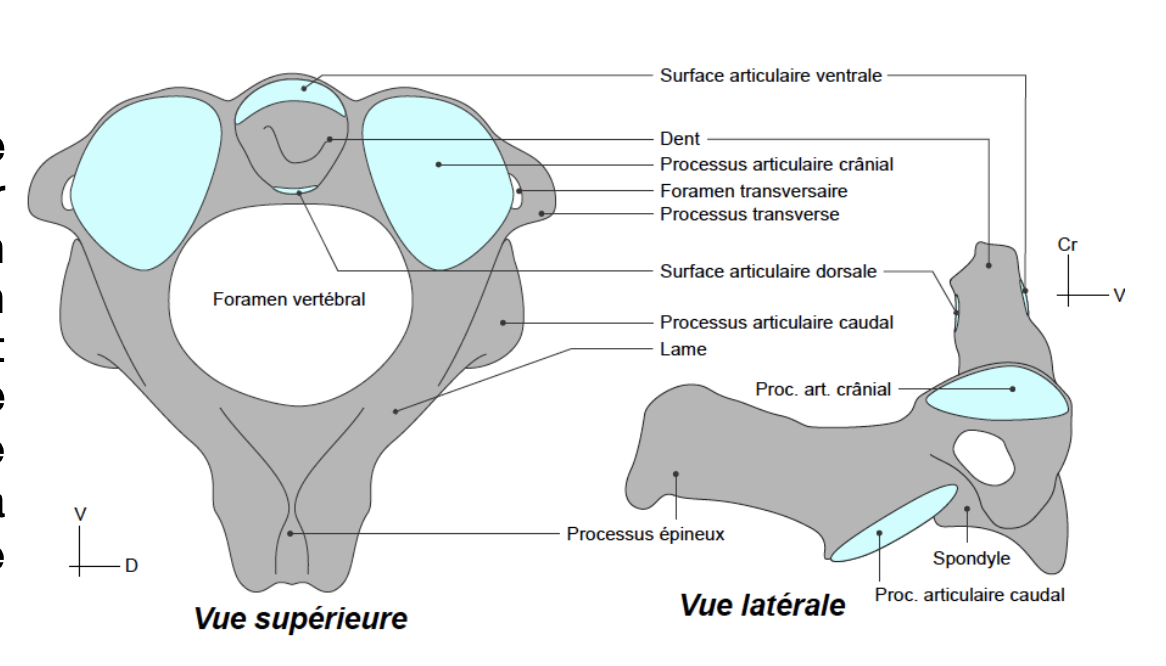 Ancien Responsable Matière Solution Claro Posted February 10, 2020 Ancien Responsable Matière Solution Posted February 10, 2020 Coucouuuu Alors du coup pour le processus articulaires crânial En réalité il est orienté en haut est en dehors: On le voit sur une vue supérieure est sur une vue latérale ! Donc il est orienté en haut et en dehors De plus la fovea caudale de l'atlas (avec laquelle s'articule le processus articulaire crânial, est orienté en bas et en dedans, si ils étaient tous les deux orientés vers dedans cela n'aurait pas été possible qu'ils s'articulent entre eux Même een iraçant un trait pour moi il est orienté en haut et en dehors Révélation Il y a 18 heures, Basquella a dit : Et par rapport au processus articulaire caudal, le prof a écrit sur son diapo qu'il était orienté en Bas/Avant (alors que pour moi, et sur la fiche du TAT également, il regarde en Bas/Avant). J'avoue qu'ici je suis d'accord avec toi, j'avais la même chose dans mon cours et même que "toutes les vertèbre cervicales ont leur processus articulaire caudal orienté en bas et en avant."... Il y a 18 heures, Basquella a dit : orientation du processus mamillaire. Personnellement je le vois en bas avec les schémas du prof. si on regarde, le processus articulaire crânial est légendé. Il est au dessus du processus transverse. Or, on peut considérer je pense que le processus transverse et le processus mamillaire sont au même Niveau Révélation J'espère que ça t'aura un peu éclairé Bonne journée Quote
