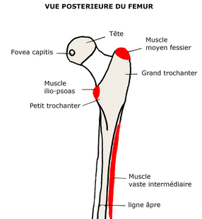 Elle se situe à l'exact opposé soit au niveau inféré-postérieur de la tête du fémur !