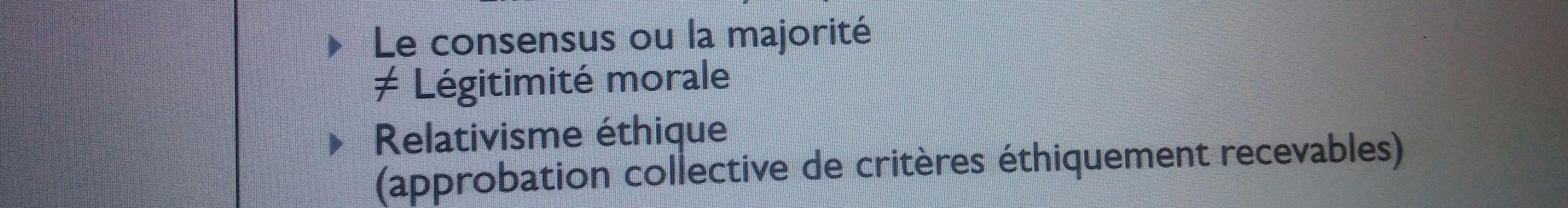 EpithéliumPrimantique Posted March 17, 2020 Posted March 17, 2020 Salut ! alors moi j'ai écrit : le consensus ou la majorité est différente de la légitimité morale(ce qui est conforme à la règle morale) et en fait c'est pour bien que tu gardes en tête que çà peut être lié à la majorité tout en entrant dans la "morale" ou alors être complètement différent. En espérant que çà t'aide un peu :S Boncourage ! Quote