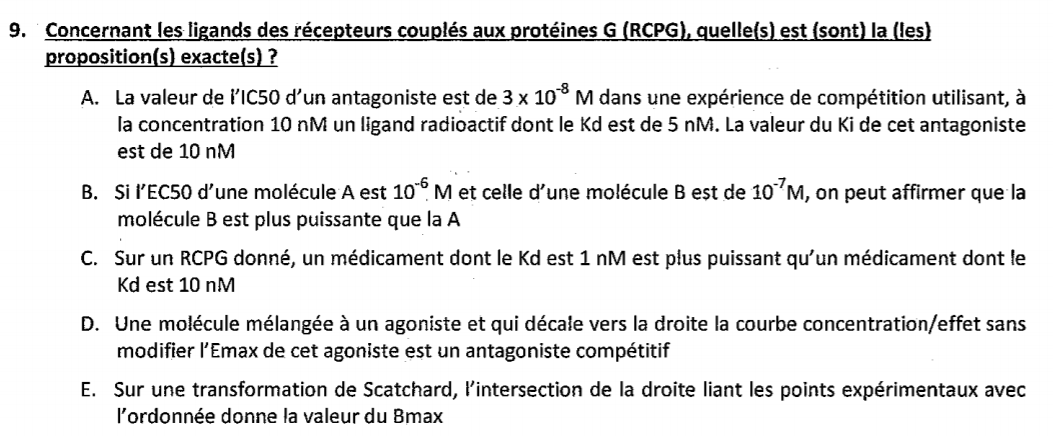 EniramJ Posted March 22, 2020 Posted March 22, 2020 Bonjour, plusieurs QCM me posent problème : -"Concernant une molécule M interagissant avec un RCPG : -si le Kd de M est 10 fois plus petit que celui d'une molécule de référence, on peut conclure qu'il s'agira d'un agoniste entier -> Faux -si M diminue la production d'AMPc intracellulaire, son effet passe uniquement par la protéine Gi" -> Faux -"Les comprimés gastro-résistants sont utilisés pour permettre une libération prolongée du principe actif" -> Faux -Et les items A et C du QCM 9, (A est vrai et C est faux) Merci beaucoup et bonne après-midi ! Quote