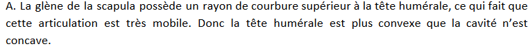 Nomie Posted March 26, 2020 Posted March 26, 2020 Bonjour, Je ne comprends pas la justification suivante parce que je n'arrive pas à visualiser ce que veut dire que la glène de la scapula possède un rayon de courbure supérieur à celui de la tête humérale. Quote