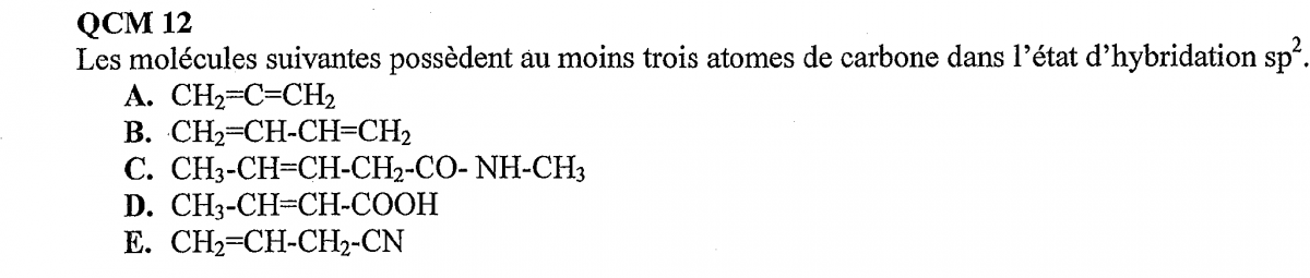 Bonjour  , j'ai un problème avec l'hybridation , je comprend le principe mais devant les QCMS je suis bloqué . Ici , ce QCM  les bonnes réponses sont BCD . Si vous pouvez m'expliquer ça serait coul ! Merci beaucoup !!