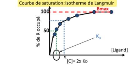 Solution LeDucDePurpan Posted April 10, 2020 Solution Posted April 10, 2020 Salut ! Le Kd = 2 nM et 2xKd n'est pas égal à 100% des récepteurs occupés ! (c'est beaucoup plus comme on le voit sur un schéma type !) Et vu que l'on a que 4nM de Ligand, on sait que la concentration est insuffisante pour occuper tous les récepteurs Quote